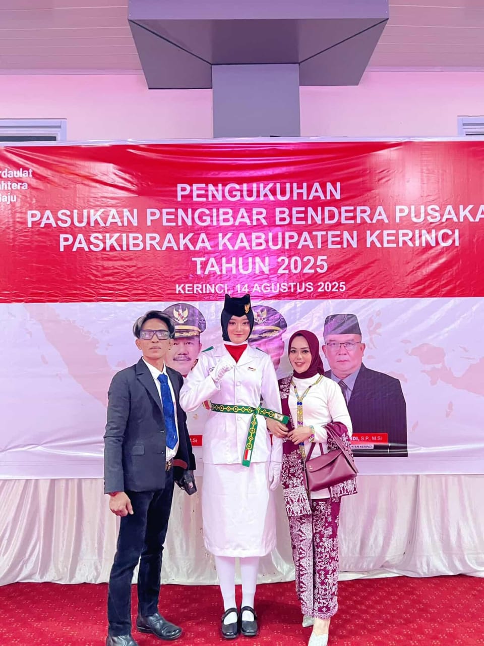 Kerinci – Senyum bangga terpancar dari wajah Aurelia Natasya, siswi SMA Negeri 5 Kerinci, ketika resmi dikukuhkan sebagai anggota Pasukan Pengibar Bendera Pusaka (Paskibraka) Kabupaten Kerinci 2025 pada 14 Agustus lalu. Dengan seragam putih khas Paskibraka, Aurelia berdiri tegap, mewakili generasi muda yang disiplin, berani, dan penuh dedikasi.