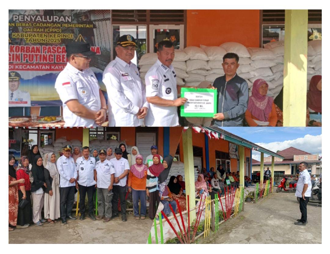 Bencana angin puting beliung yang terjadi pada 2 Agustus 2025 lalu telah merusak puluhan rumah warga di tiga desa, yakni Desa Batang Sangir, Desa Kersik Tuo, dan Desa Sangir. Sebagai bentuk kepedulian, Pemerintah Kabupaten Kerinci melalui CPPD menyalurkan bantuan beras untuk meringankan beban masyarakat pasca bencana.
