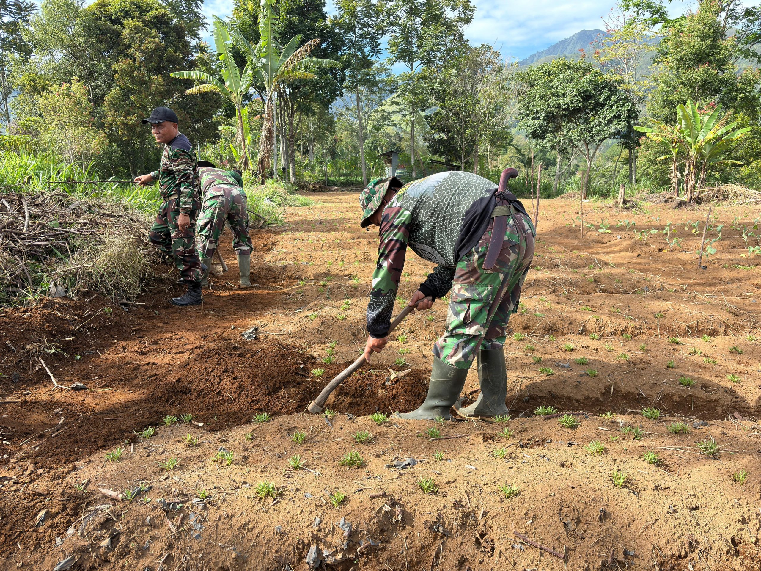 Dengan semangat gotong royong, Sertu Harnodi bersama warga setempat membersihkan rumput dan mempersiapkan lahan agar dapat ditanami berbagai komoditas pangan. Program ini tidak hanya bertujuan untuk memperkuat ketahanan pangan desa, tetapi juga mendorong kemandirian ekonomi masyarakat.