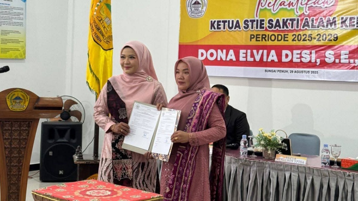 Sungai Penuh|metro9news.com|Dona Elvia Desi, S.E., M.M resmi dilantik dan menjabat  Ketua Sekolah Tinggi Ilmu Ekonomi (STIE) Sakti Alam Kerinci (SAK) untuk periode 2025–2029. Prosesi pelantikan berlangsung pada Jumat (29/8/2025) dan dipimpin langsung oleh Ketua Pengurus Yayasan Pendidikan Tinggi Sakti Alam (YPTSA), Sri Eliyanti, S.Ag., M.Pd.I.