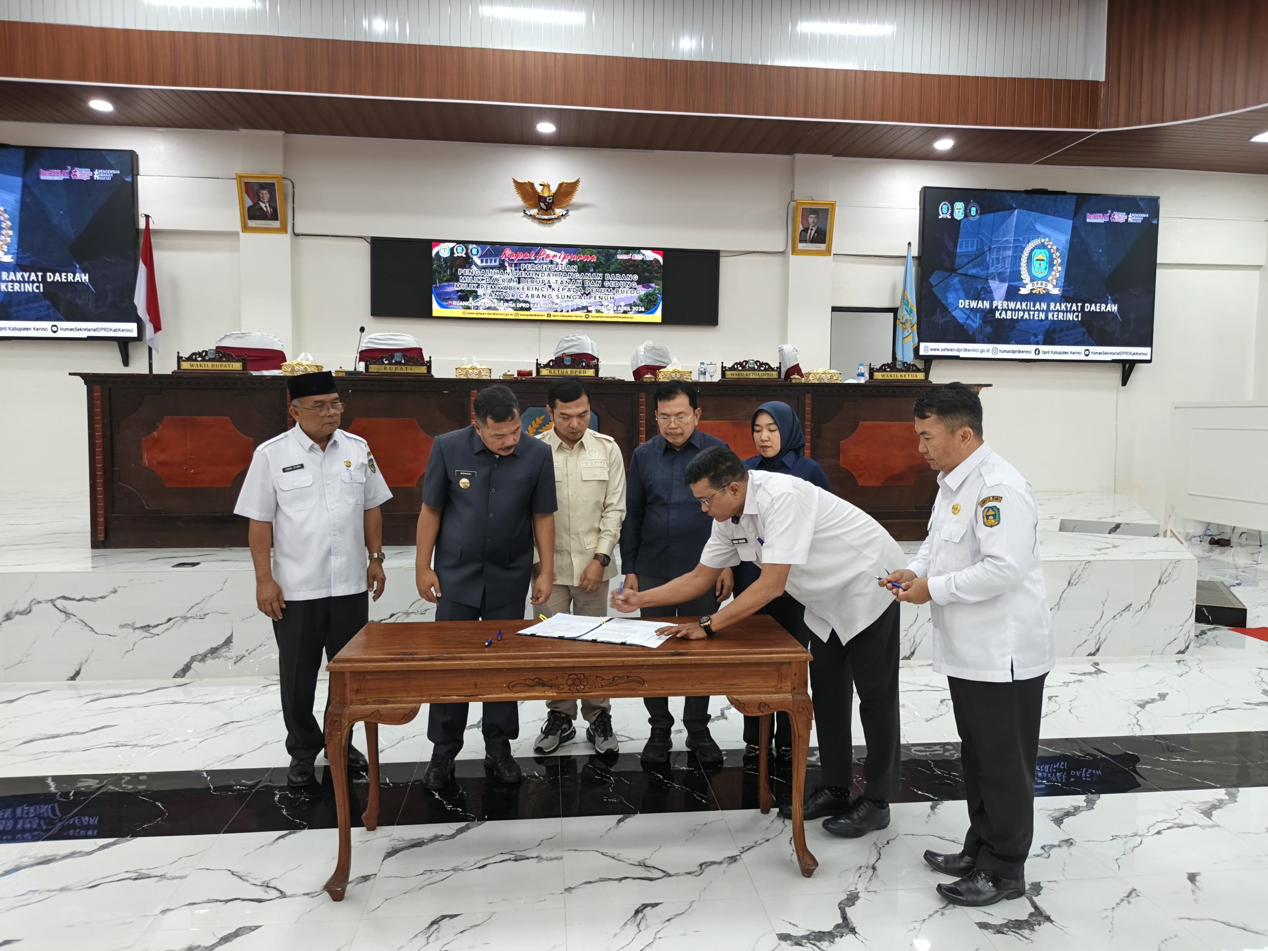 Rapat yang berlangsung di ruang sidang DPRD Kabupaten Kerinci tersebut dihadiri oleh Bupati Kerinci Monadi, pimpinan dan anggota DPRD, Sekretaris Daerah Kabupaten Kerinci, serta jajaran Organisasi Perangkat Daerah (OPD).