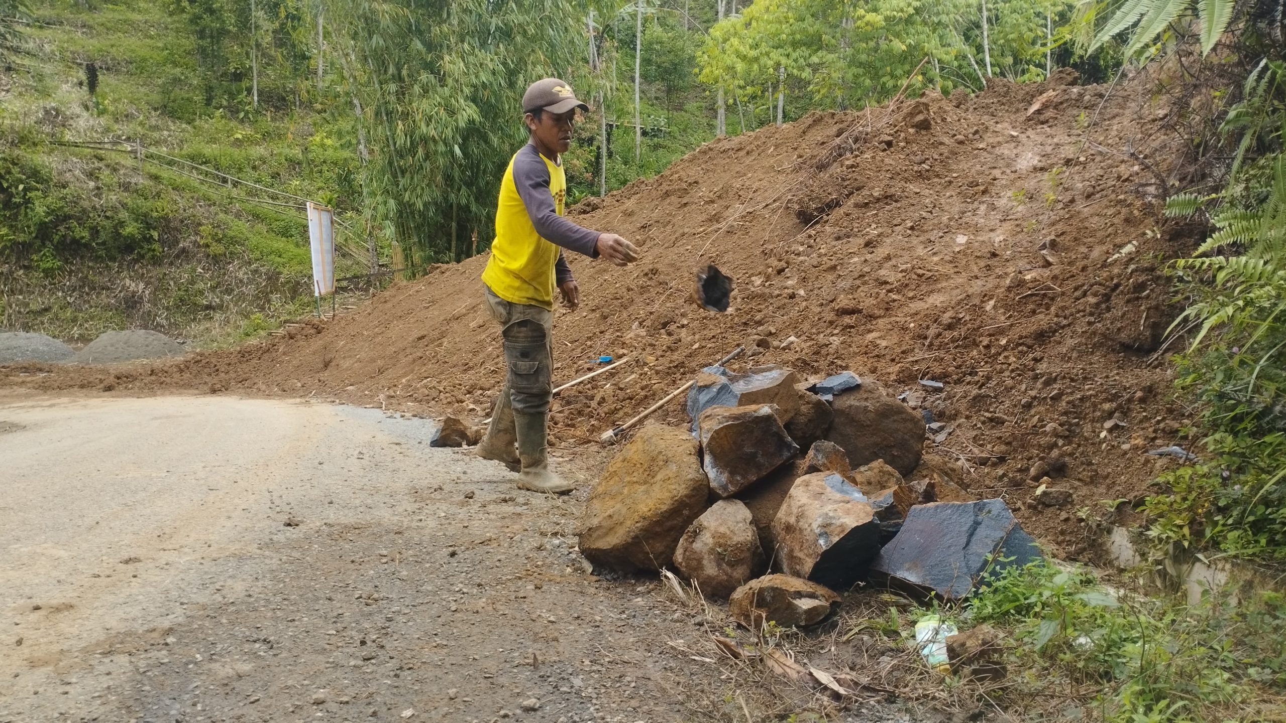 Meski pekerjaan masih banyak, jalan pertanian yang sudah mulai disentuh TNI dan warga saat ini bagan jalan sudah mulai kelihatan. Diawali dengan pemerataan tanah dan penataan batu untuk kebutuhan pembangunan fisik oleh warga setempat, terus menata material batu dan mulai meratakannya.