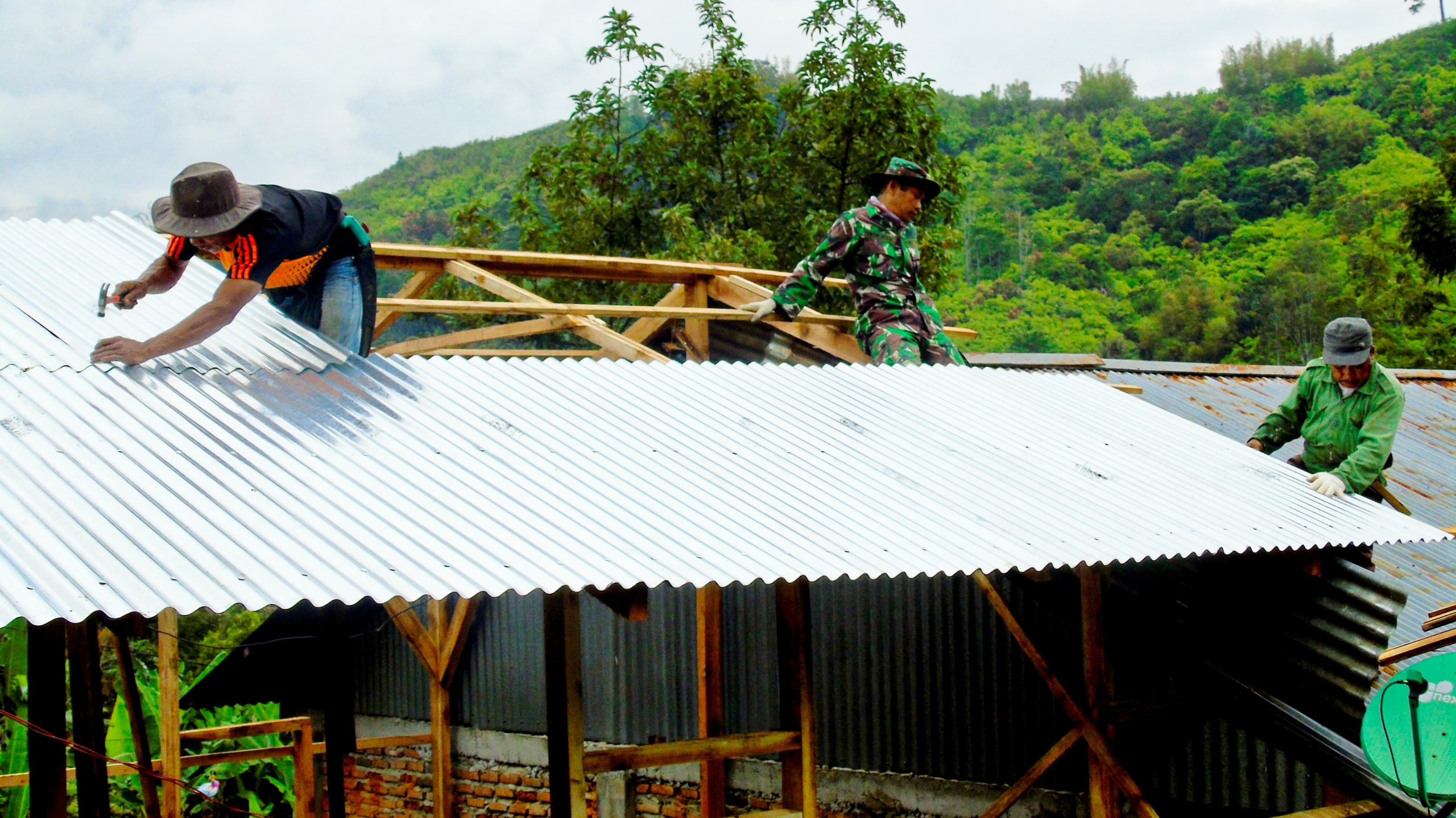 Di tengah semangat gotong royong, personel Satgas TMMD terlihat bahu-membahu bersama warga setempat menggenjot pemasangan rangka atap rumah RTLH. Kegiatan ini dilakukan setelah sukses menuntaskan pekerjaan di titik pertama.