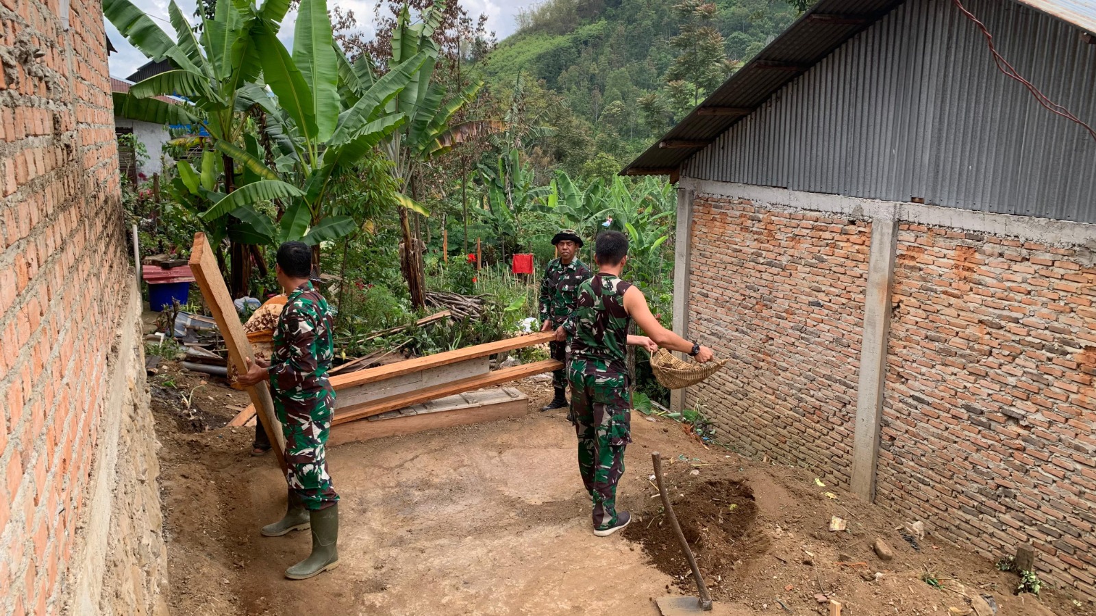 Satgas TMMD Kodim Kerinci Bantu Pemasangan Kayu Rumah Tidak Layak Huni