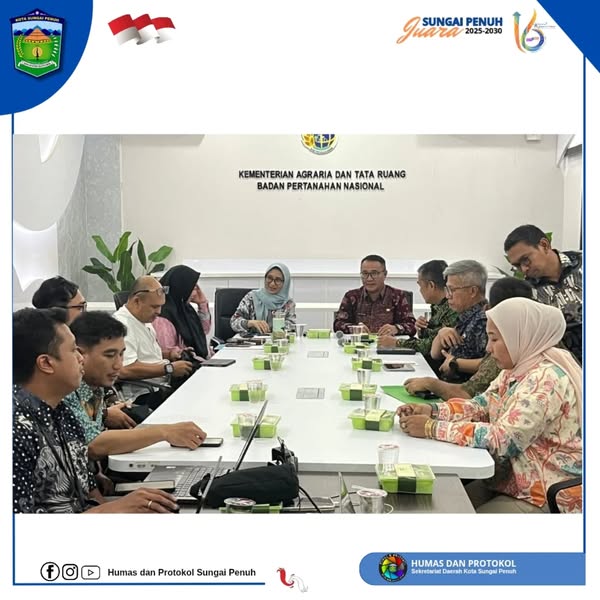 JAKARTA – Walikota Sungai Penuh, Alfin, SH, melakukan kunjungan kerja ke Kementerian Agraria dan Tata Ruang/Badan Pertanahan Nasional (ATR/BPN) dalam rangka memperjuangkan usulan Kota Sungai Penuh sebagai Pusat Kegiatan Wilayah (PKW), Jumat (12/9).